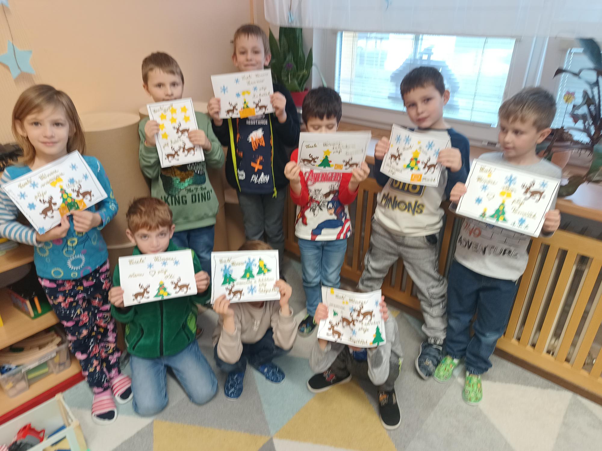Tužku držíme jako profesionální písaři. Naučili jsme se už 14 básniček - a zvládli jsme některé před Mikulášem jako nic! A teď jdeme do finále, protože zápis do prvních tříd nás čeká už za pár týdnů měsíc. Tak nám držte palce. Děkujeme!