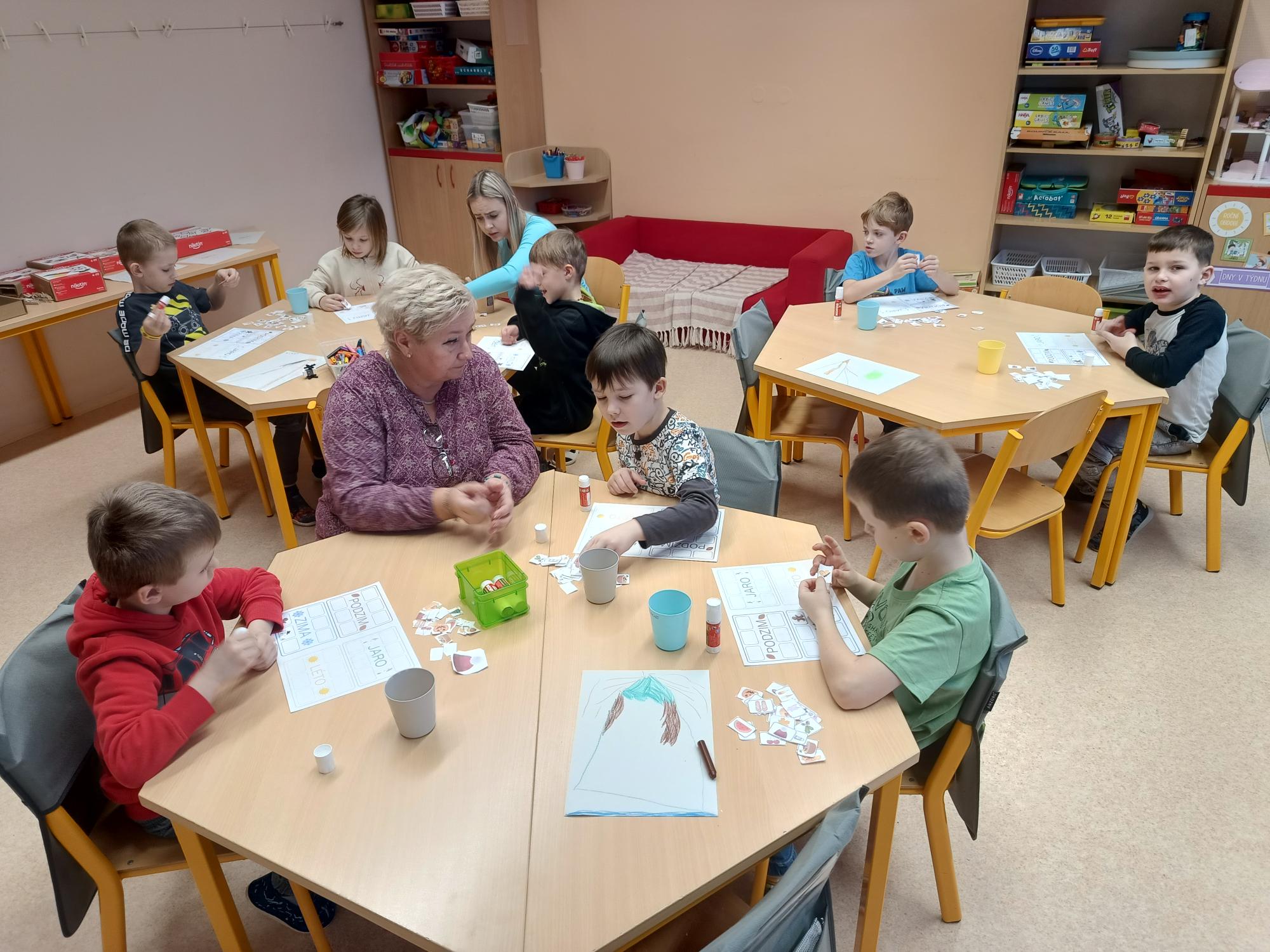 Celý podzim a kousek ledna jsme byli pilní jako včeličky a naučili jsme se spoustu nového. Dokážeme rozložit slovo na slabiky a ty pak správně spočítat. A dokážeme je rozložit i na hlásky a ty pak správně seřadit. Poznáme, co je samohláska - Hlásulky nám pomohou. Umíme trochu kouzlit se slovy. Když je něčeho do deseti, hravě to spočítáme. A co k sobě patří, hravě poznáme.