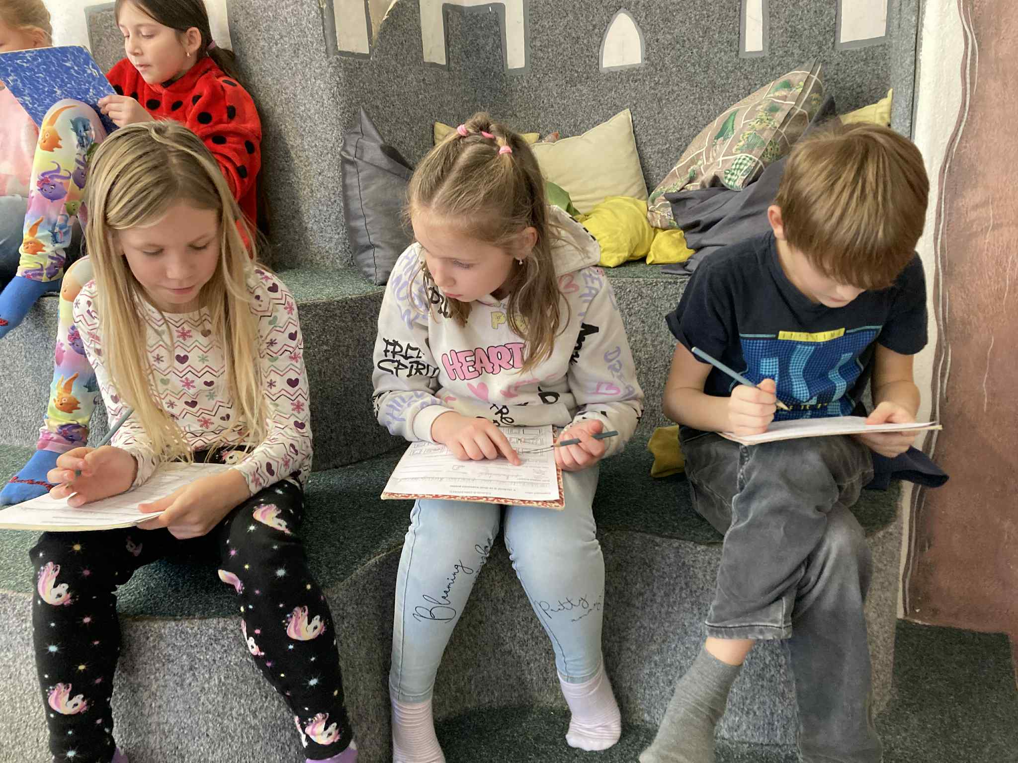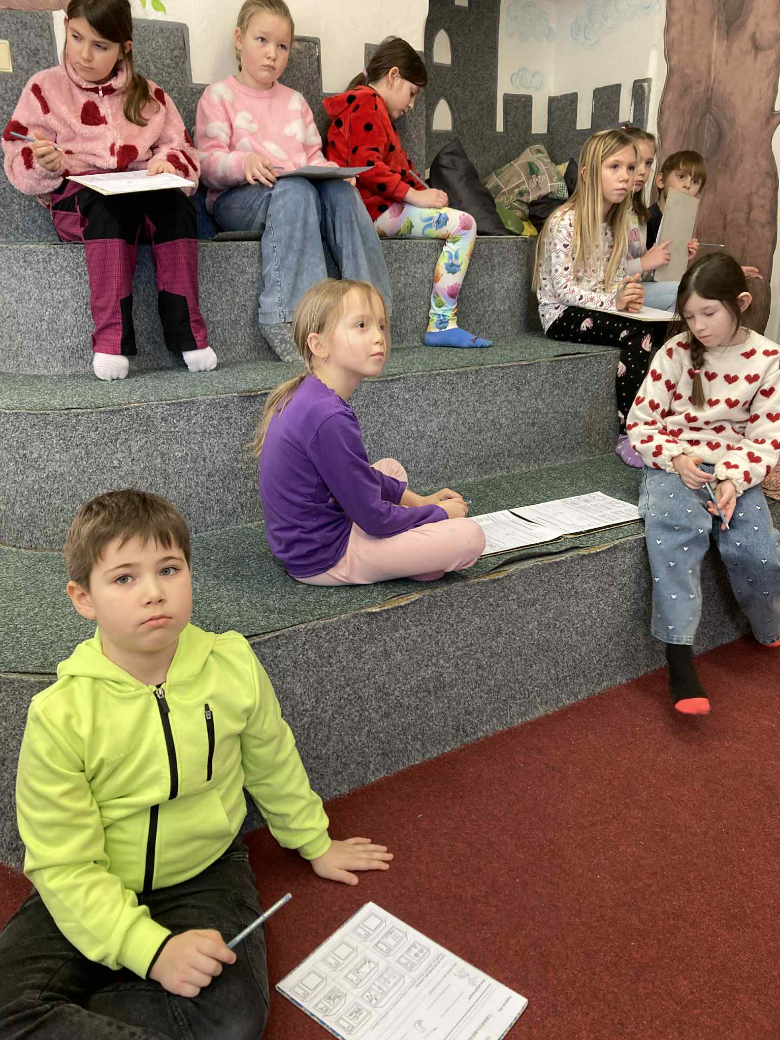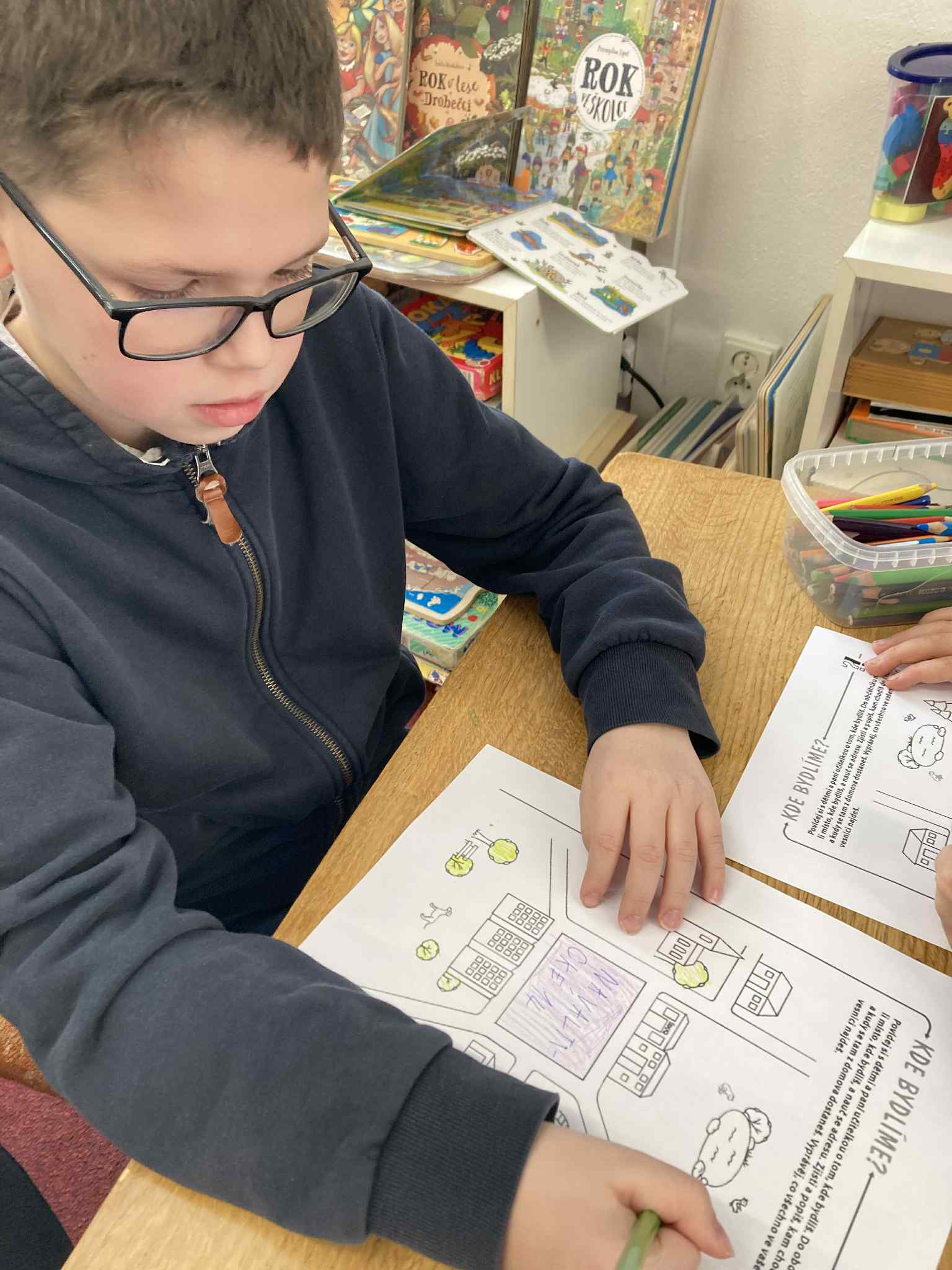 V měsíci lednu žáci 2.B třídy navštívili knihovnu, kde pro nás byl připraven program na téma „Naše město“. Ústředním bodem programu bylo společné čtení a práce s příběhem z knihy Petry Braunové Jak se Vojta ztratil. Děti se seznámily s příběhem chlapce Vojty, který se poprvé vydává bez rodičů se strýčkem na výlet do světa a během cesty se ztratí. Právě tato část příběhu děti zaujala a otevřela prostor k diskusi. Společně jsme si povídali o tom, jak se bezpečně pohybovat ve městě, jaké to je být najednou bez rodičů v neznámém prostředí a na koho se obrátit, když se dítě dostane do nesnází. Děti aktivně sdílely své vlastní zkušenosti – například kdy jely samy autobusem, kdy se na chvíli ztratily v obchodě nebo jak se orientují cestou do školy či na kroužky. Mluvili jsme o důležitých místech v našem městě, kde lze pomoc vyhledat, a o tom, proč je dobré znát svou adresu a kontakt na rodiče. Návštěva knihovny tak nebyla jen setkáním s knihou, ale i důležitou lekcí pro život v našem městě.