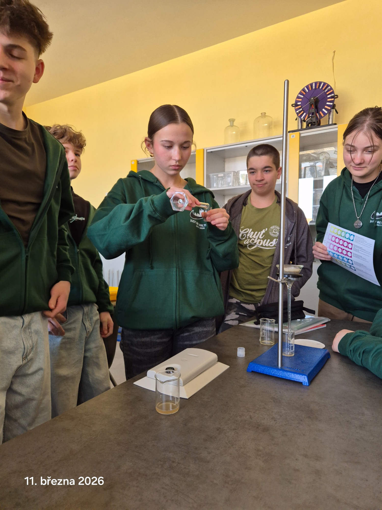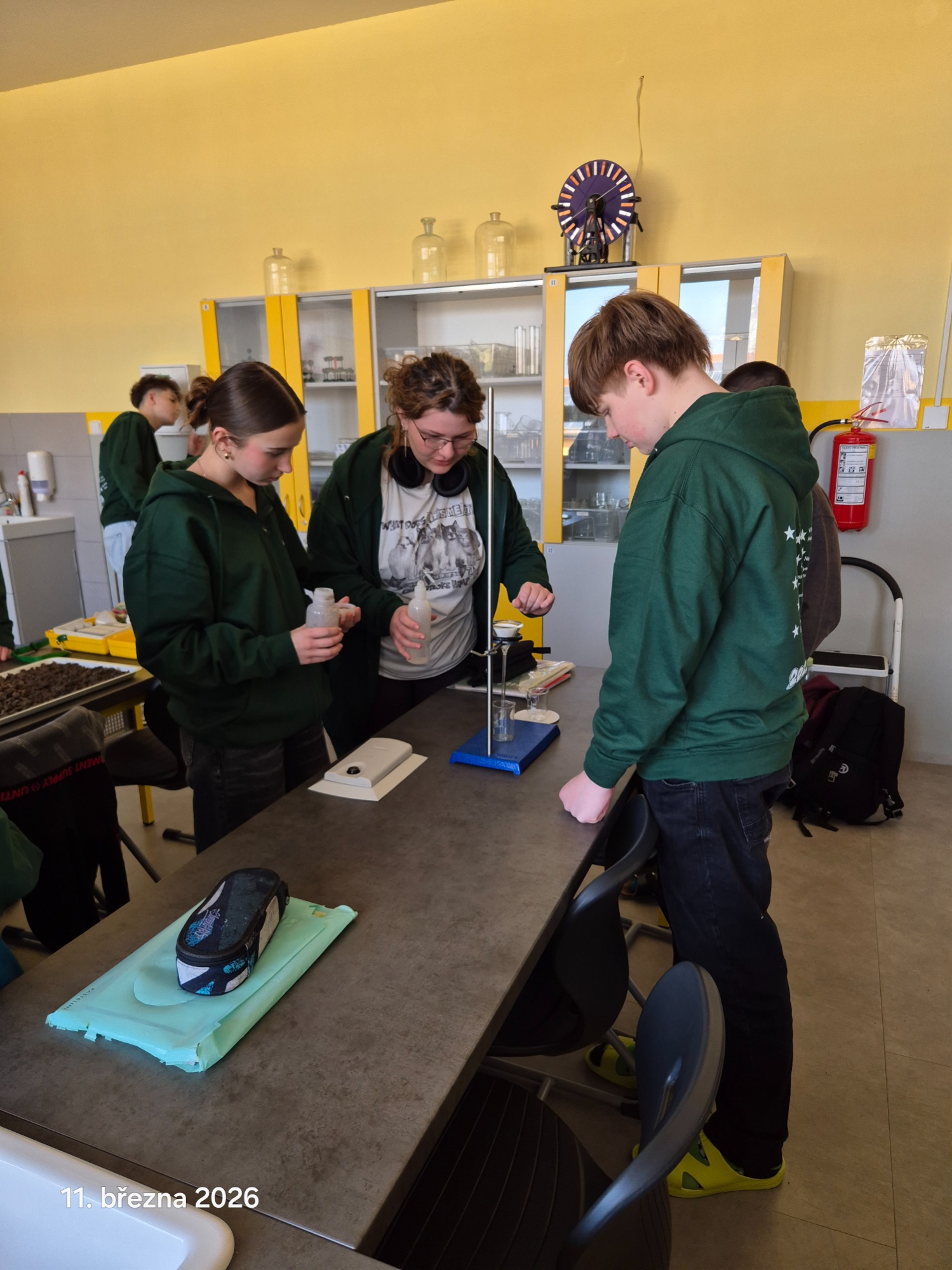 V rámci projektu CICADA4CE pokračují žáci 9. B v měřeních vlastností půdy. Tentokrát se zaměřili na zjišťování pH půdy, která byla do parčíku na Valtické přivezena. Po odběru vzorků a vysušení navezené půdy z různých míst parčíku podrobili vzorky analýze. Po opakovaných měřeních stanovili pH navážky na hodnotu 5, což odpovídá kyselému pH.
