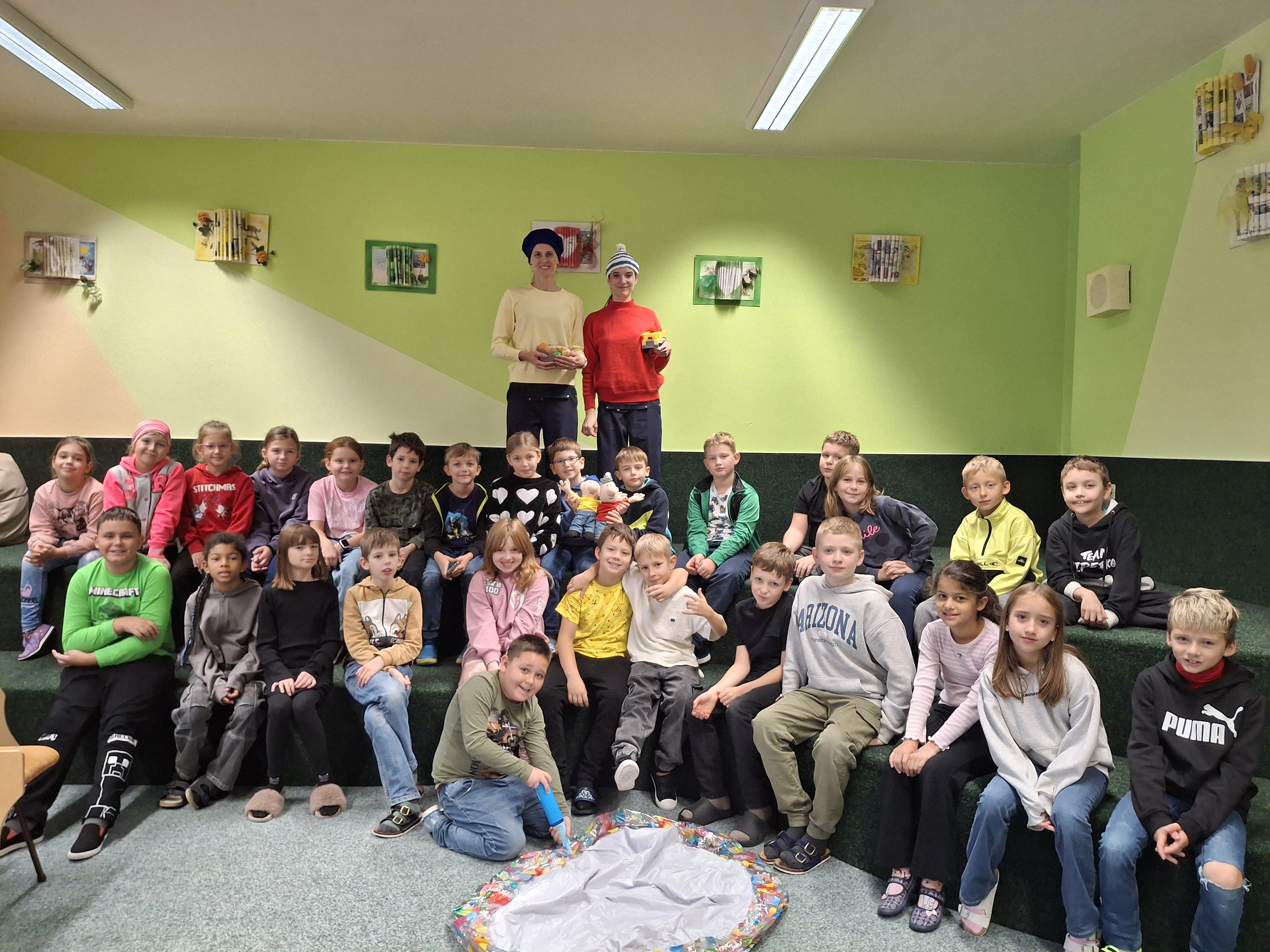 V rámci podpory finanční gramotnosti měli žáci tříd 3. A a 3. B možnost zúčastnit se zábavného a poučného edukativního programu „Pat a Mat – A je to “. Program byl formou hrané pohádky, ve které známí kutilové Pat a Mat řeší nákup bazénu na splátky.