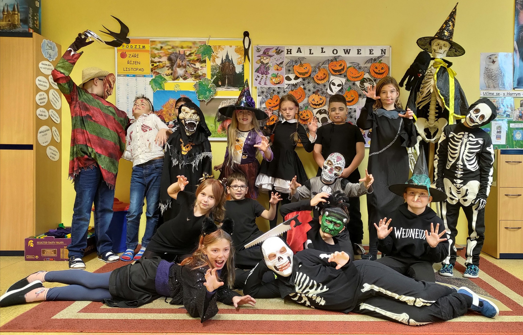 Žáci 3. B (Mrzimoru, Nebelvíru, Zmijozelu a Havraspáru)